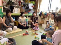 0歳から3歳まで、5組の親子さんと、幼稚園の子がいるor最近までいたスタッフで、楽しくお話しましたよ♪