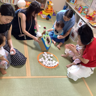 最初はママのお膝の上で様子を伺っていたお子さんも、だんだんニコニコ笑顔が増えて最後まで参加できてスタッフもびっくりでした!
