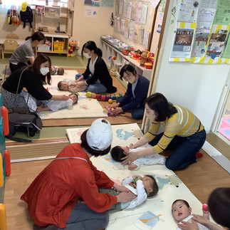今回もいつものように赤ちゃん体操、手遊び、そしてママのストレッチもしましたよ~↓