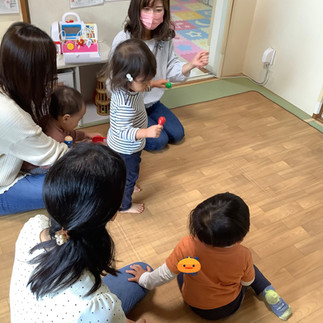 まずはうさぎさんと一緒にお名前呼ばれたらタンバリンで「は〜ぁ〜い」と答えます^ ^