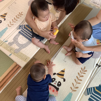 いつものように、赤ちゃん体操(といっても、みんなねんねの赤ちゃんじゃなくなっていてゴロンと横になんてなってくれないサイズの子が多かったですね~)手遊び、そしていつものママのストレッチ、、、、は今回パスさせていただきましたm(__)m私が前日寝違えたようで首が痛くて回らず、、、、トホホ。スミマセン💦